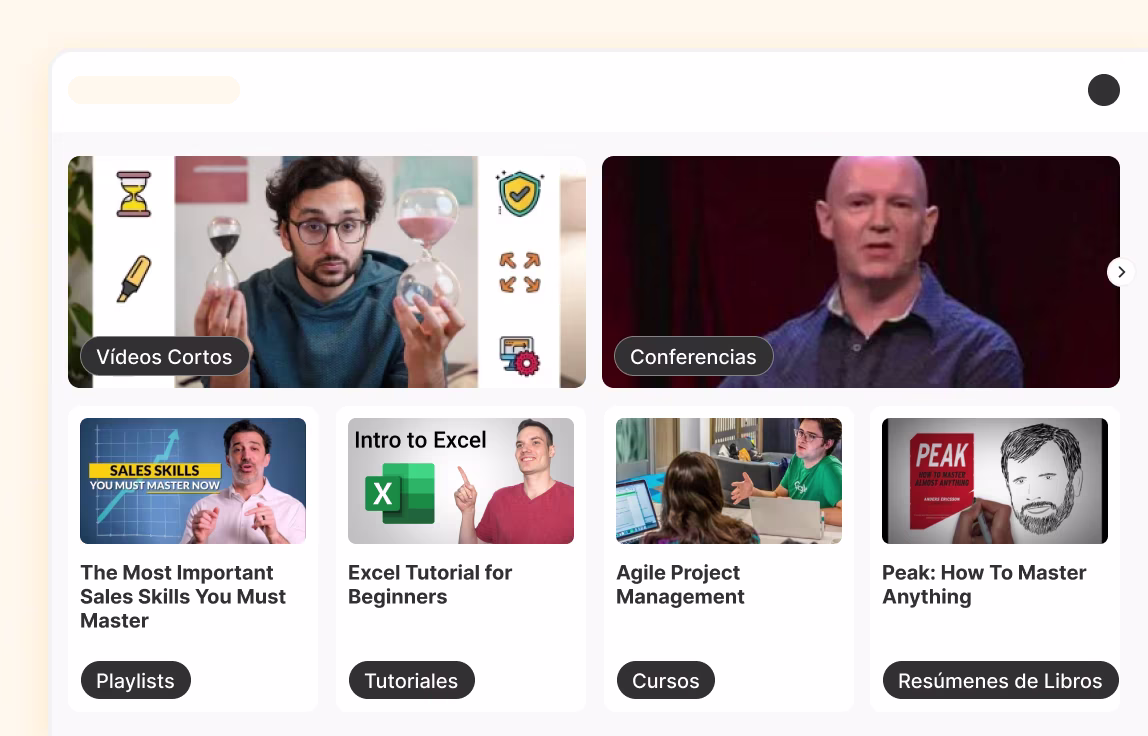 El 80% de nuestro contenido son vídeos de menos de 10 minutos con ideas prácticas para aplicar al instante.